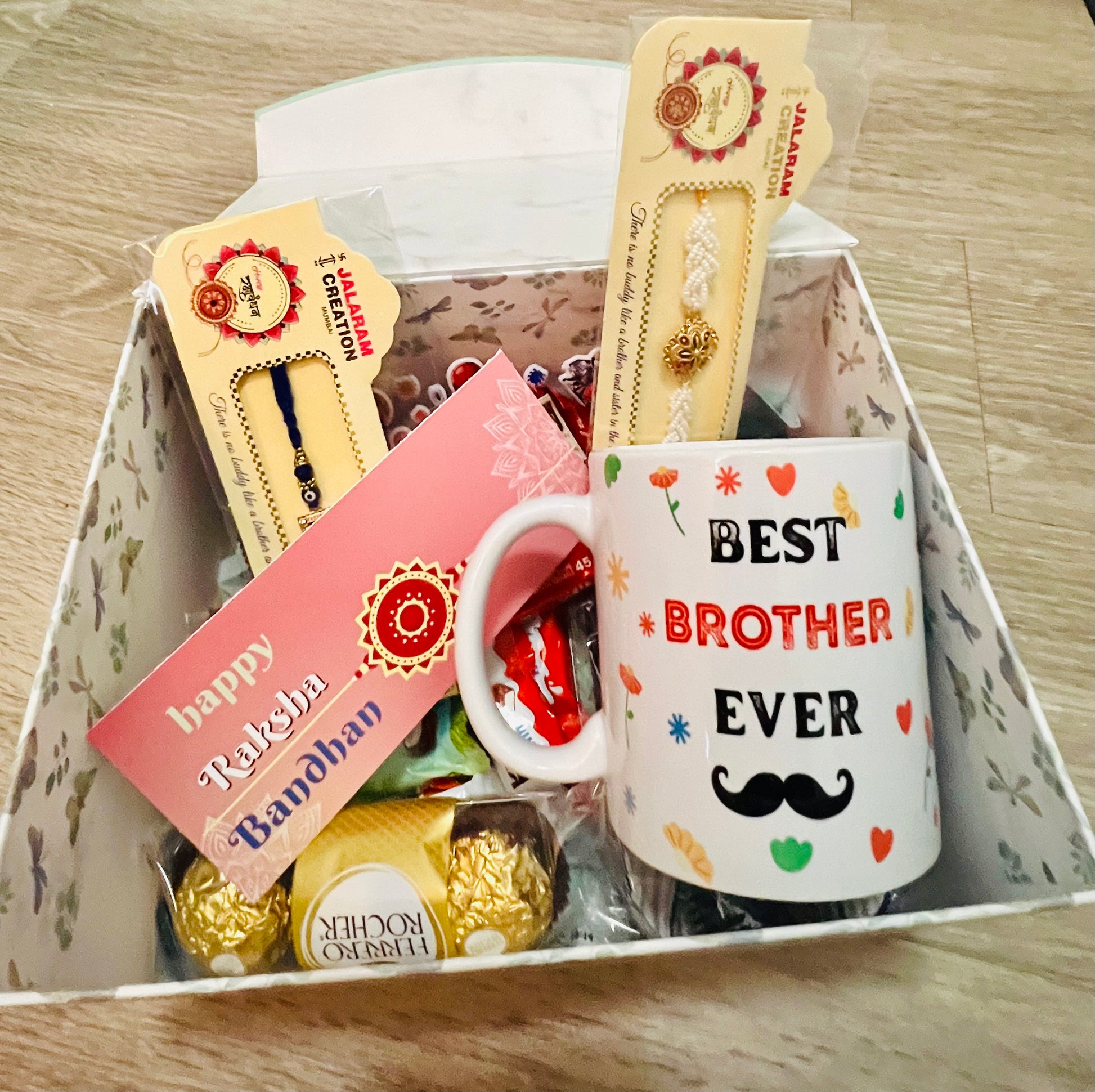 customize personalized rakhi hamper for your loving brothers , we will add two rakhi , chocolates, candys, cups, rakhi wishing card for brothers , To customize according to you You can make order here after you can take screen short and send us on email to get ready your order , 100% guaranteed we will deliver your order as soon as possible, Contact on email Punjabartpb19@gmail.com
